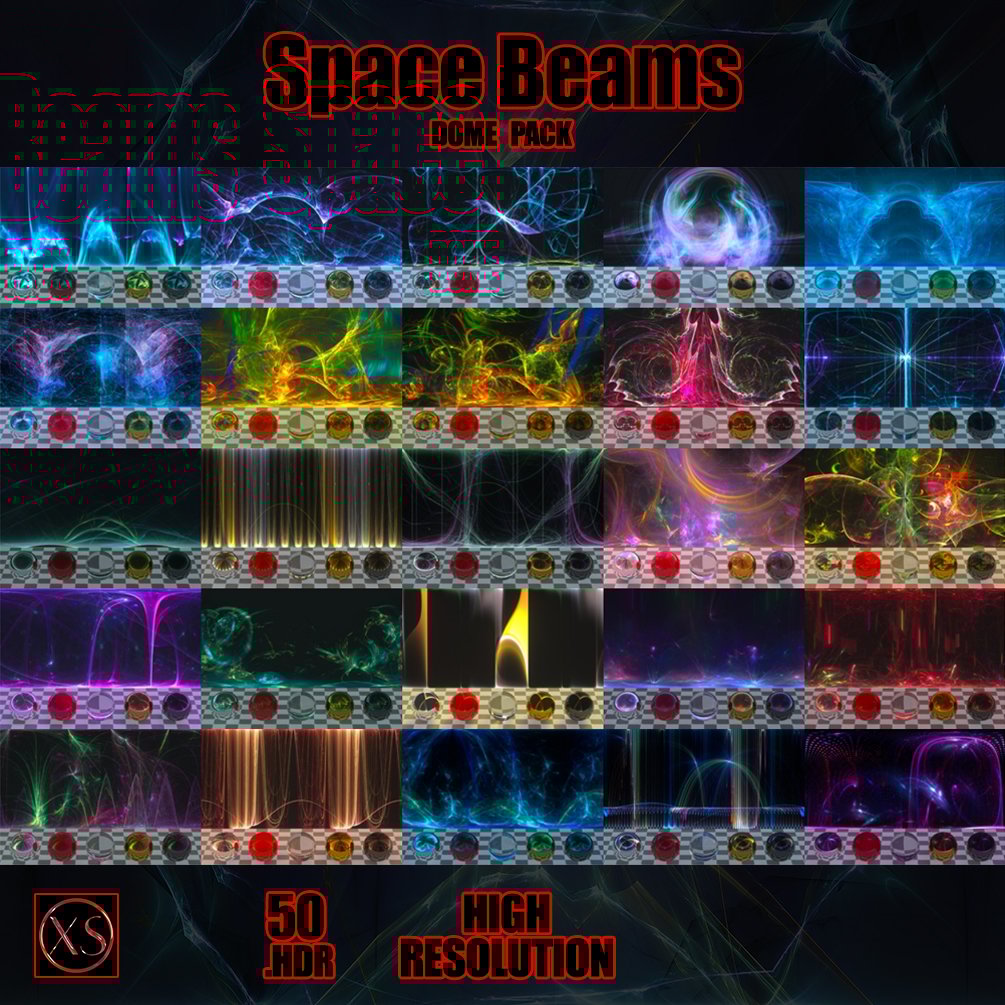The Space Beams - Dome Pack is a collection of 50 unique 360-degree images (.HDR format).