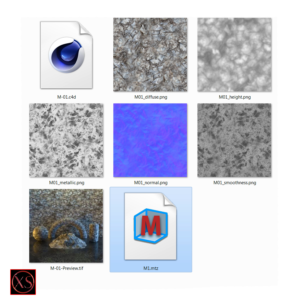 The kit includes 33 Materialize projects, so you can get other infinite variations, and 33 Cinema 4D projects with a simple material setup example (Octane).